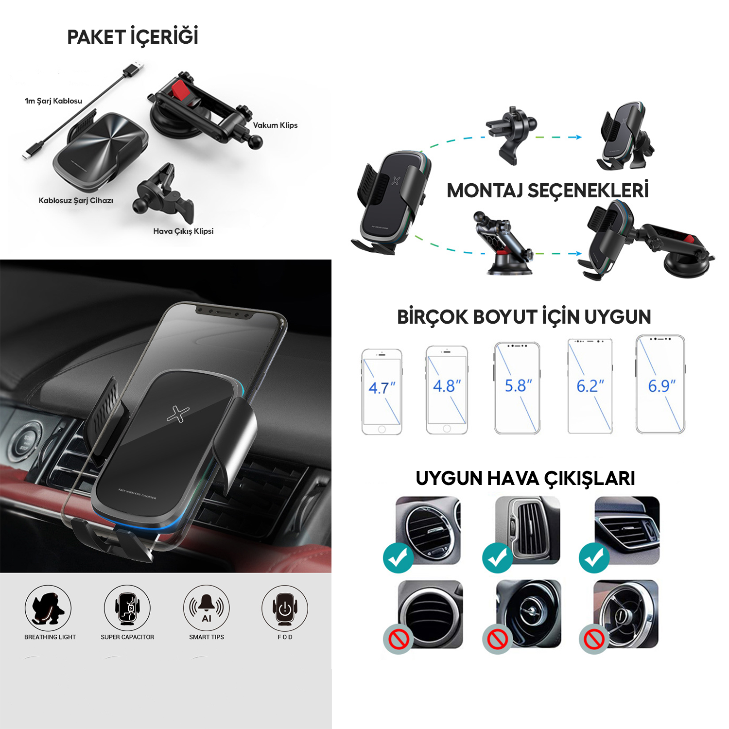 | Kullanım Tipi | Araç Camı Etkili Telefon Tutucu |