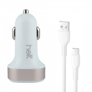 Helt HT-19 10W 2 Çıkışlı Type-C Kablo + Araç Şarj Aleti (Beyaz) NT-100852