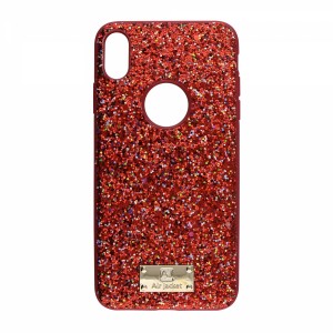 Air Jacket Apple iPhone XS Max Uyumlu Simli Arka Koruma Kılıf (Kırmızı) VR-17821