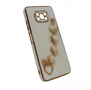 Nettech Xiaomi Poco X3 NFC Uyumlu Lüx Kalp Zincir Arka Koruma Kılıf (Beyaz) NT-94832