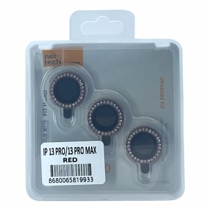 Nettech Apple iPhone 13 Pro Max Uyumlu Diamond Taşlı Model Kamera Cam Koruyucu (Kırmızı) NT-98916