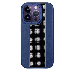 Nettech Apple iPhone 14 Pro Uyumlu Taşlı Deri Seri Arka Koruma Kılıf (Lacivert) NT-101494