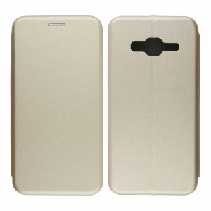 Nettech Samsung Galaxy J300 J3 Uyumlu Lüx Seri Kapaklı Kılıf (Gold) VR-18121