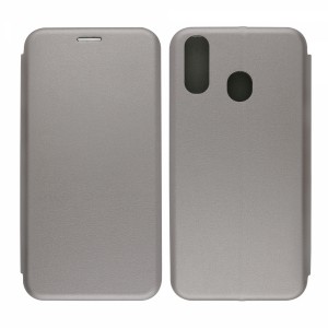 Nettech Samsung Galaxy A20 Uyumlu Lüx Seri Kapaklı Kılıf (Gri) VR-18164