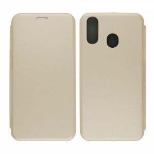 Nettech Samsung Galaxy A20 Uyumlu Lüx Seri Kapaklı Kılıf (Gold) VR-18165