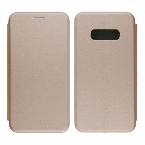 Nettech Samsung Galaxy S10E Uyumlu Lüx Seri Kapaklı Kılıf (Gold) VR-18207
