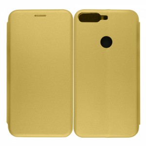 Nettech Huawei Y6 2018 Uyumlu Lüx Seri Kapaklı Kılıf (Gold) VR-18220