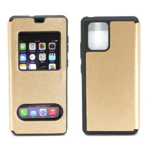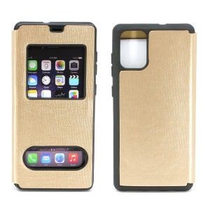 Nettech Samsung Galaxy A71 Uyumlu Pencereli Kapaklı Kılıf (Gold) NT-79953